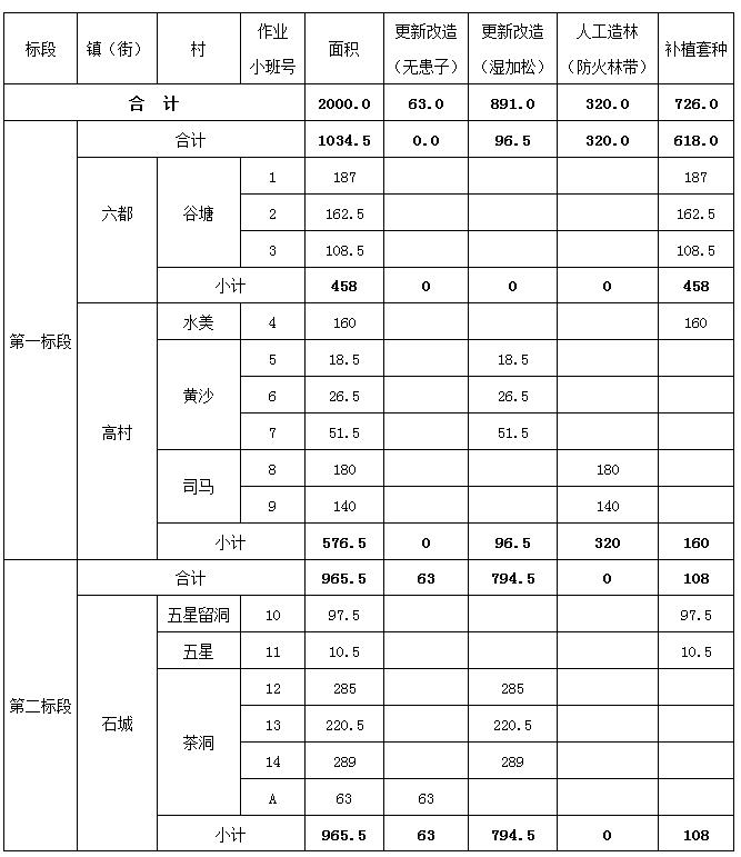 云安區(qū)2020年森林碳匯重點(diǎn)生態(tài)工程造林項目各造林小班面積統(tǒng)計表